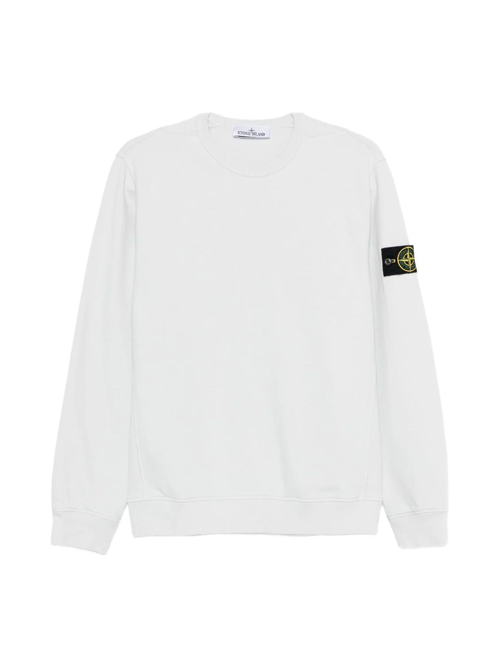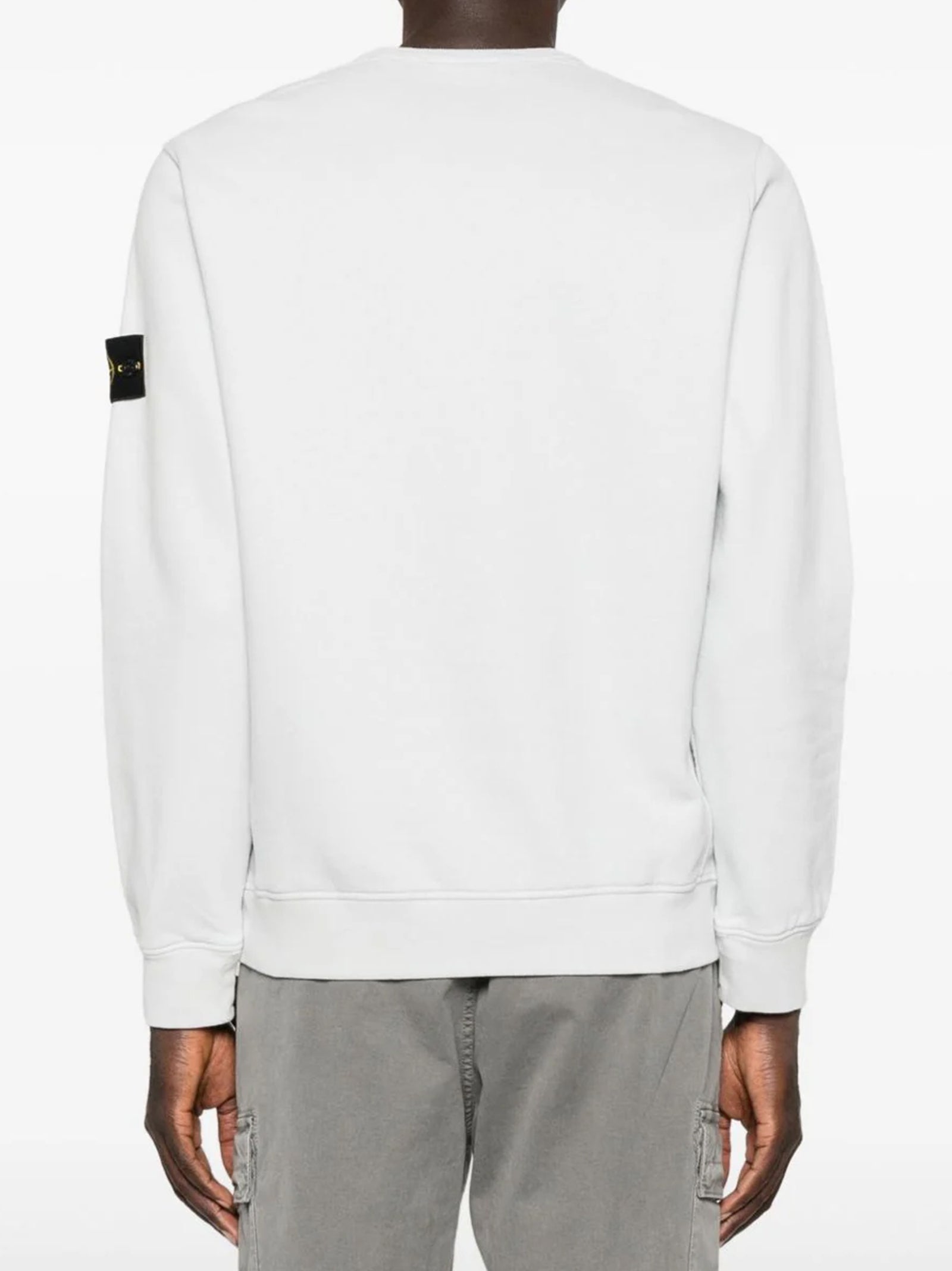 Felpa girocollo in cotone biologico garzato con inserti triangolari a costine sulle spalle e sui fianchi. Modello tinto in capo.