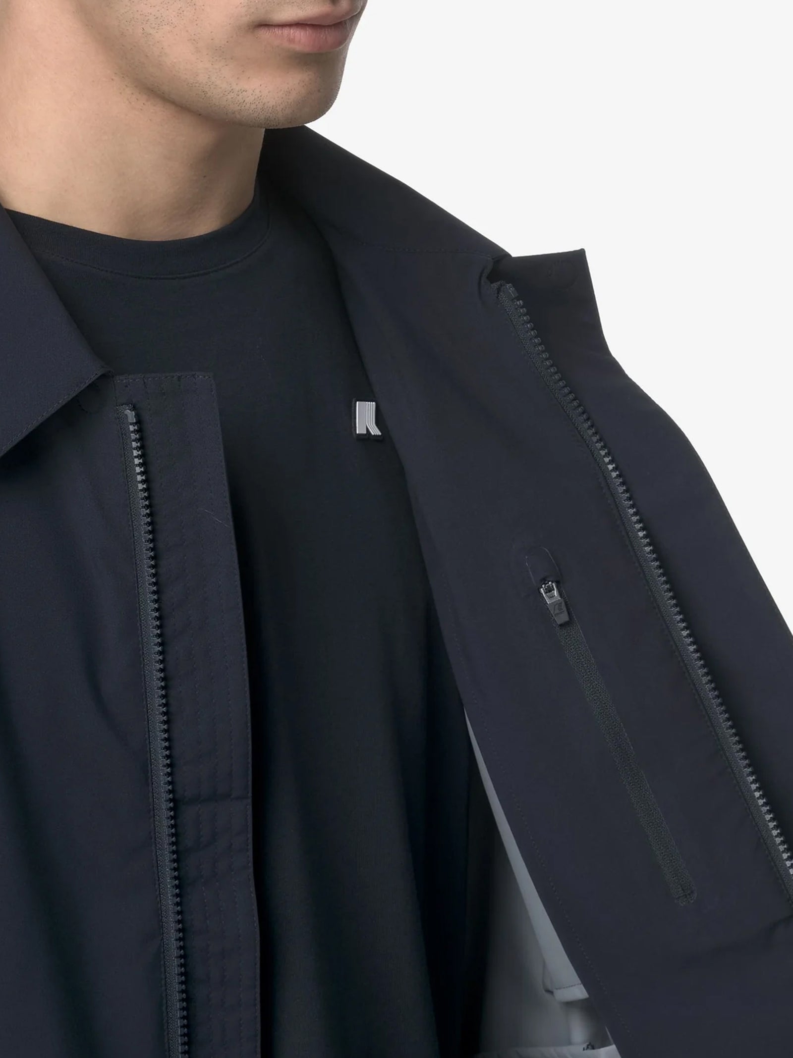 Kenley è una giacca da uomo tre quarti dallo stile urbano con ispirazione sportiva, perfetta per le mezze stagioni. Realizzata in poliestere elasticizzato con membrana isolante interna, offre protezione da vento e pioggia, garantendo al tempo stesso traspirabilità e libertà di movimento. Cuciture termonastrate, chiusura con zip coperta da patta, polsi regolabili e due tasche con zip, presenta una vestibilità regolare ed è rifinita con logo stampato bianco.