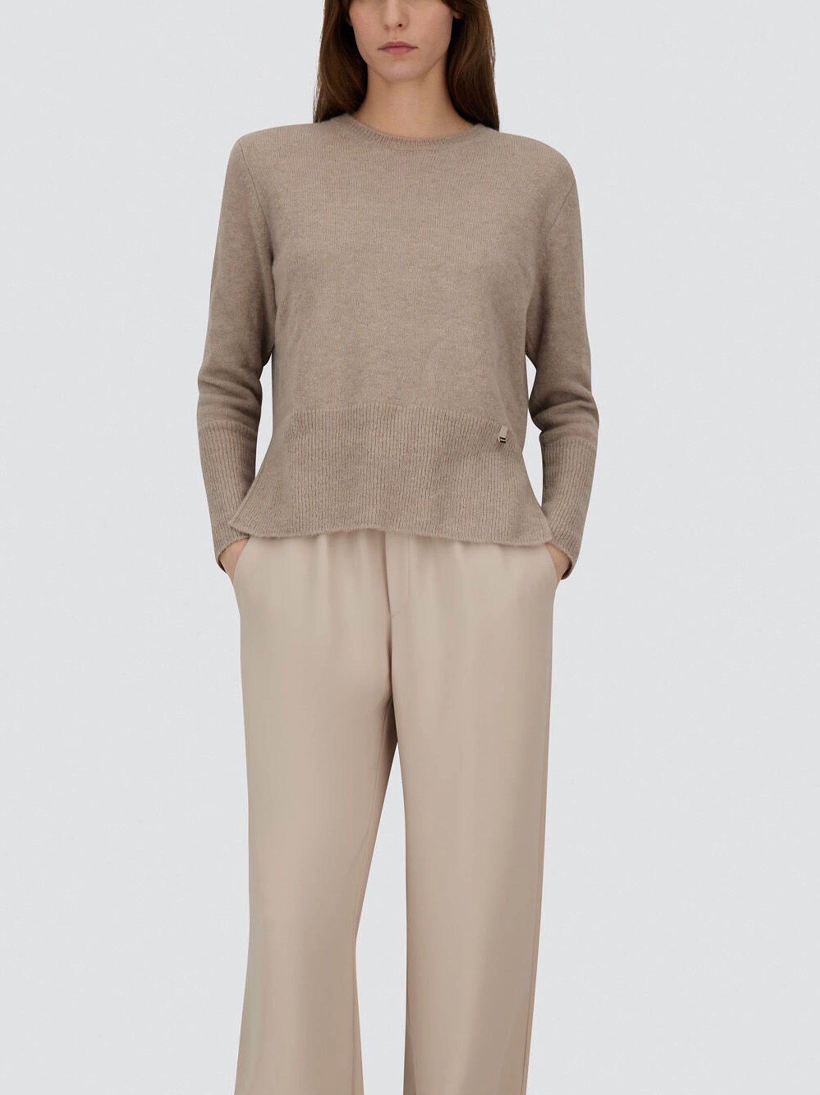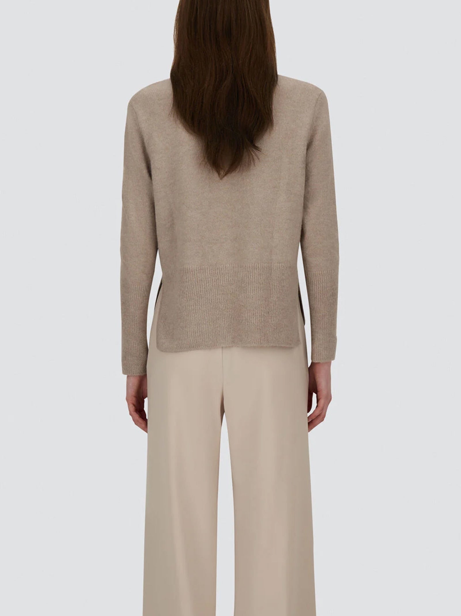 Maglia in lana e alpaca a punto rasato, dallo stile essenziale e raffinato, adatta a look sia casual che eleganti. Vestibilità regolare, girocollo, maniche lunghe, spacchi laterali e logo Herno in metallo sul retro.