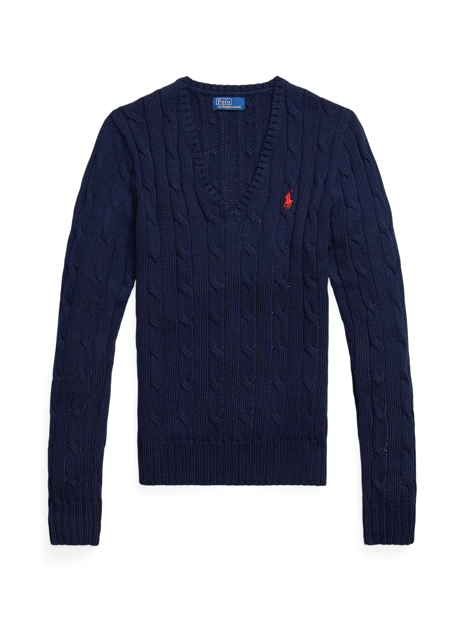 Maglia in cotone con scollo a V e finiture a coste su polsini e orlo, impreziosita dal pony ricamato sul lato sinistro del torace. Taglio slim.