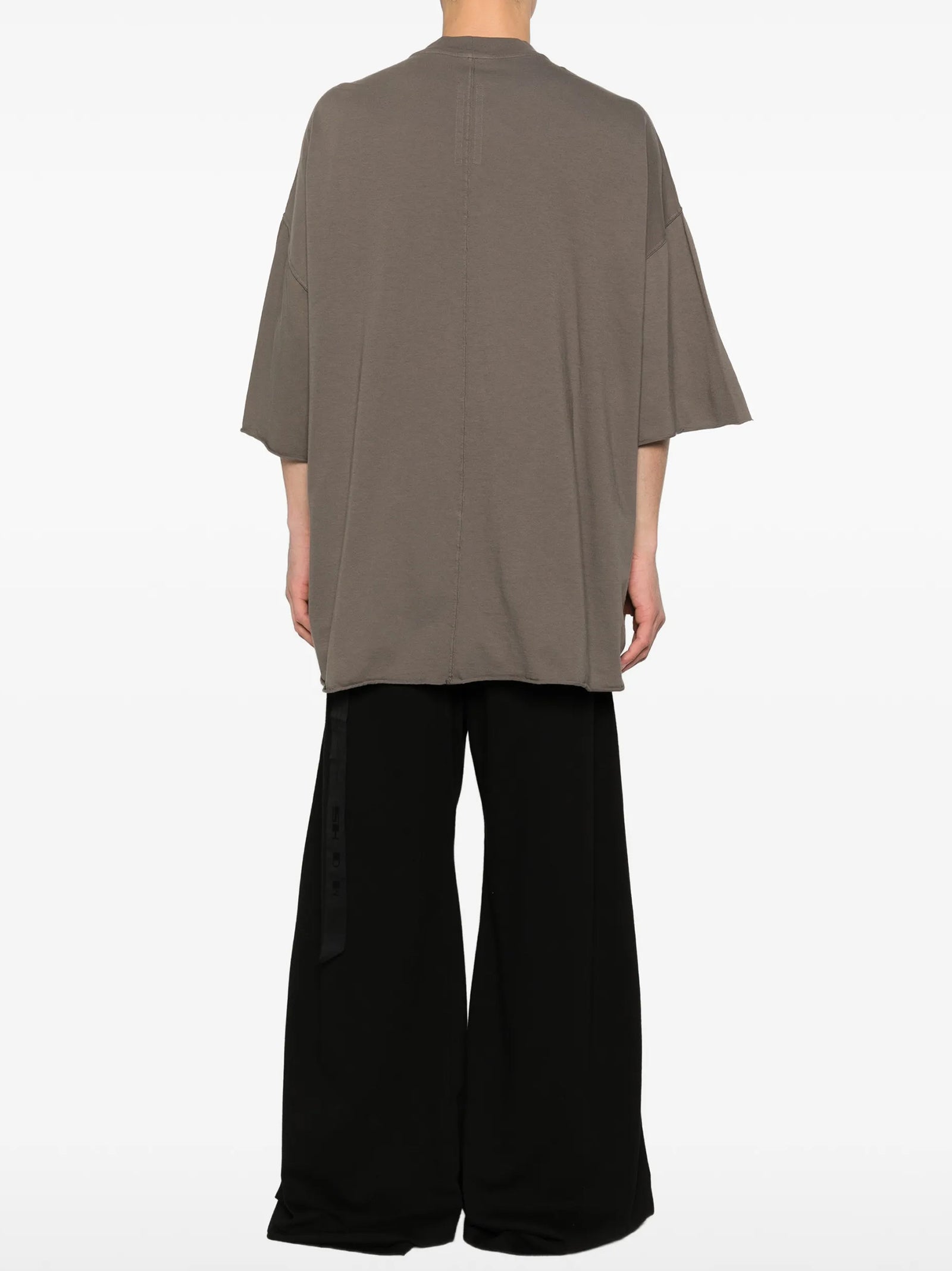 T-shirt grafica, maniche corte, girocollo, cuciture tono su tono, dettaglio nastro.