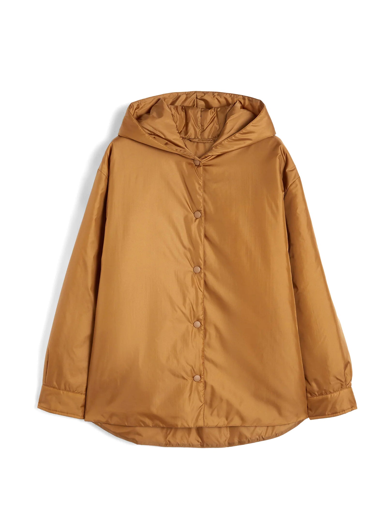Giubbotto in morbido e leggero nylon imbottito con ovatta Thermore, cappuccio, tasche inserite laterali, chiusura frontale con bottoni a pressione, vestibilita regolare.