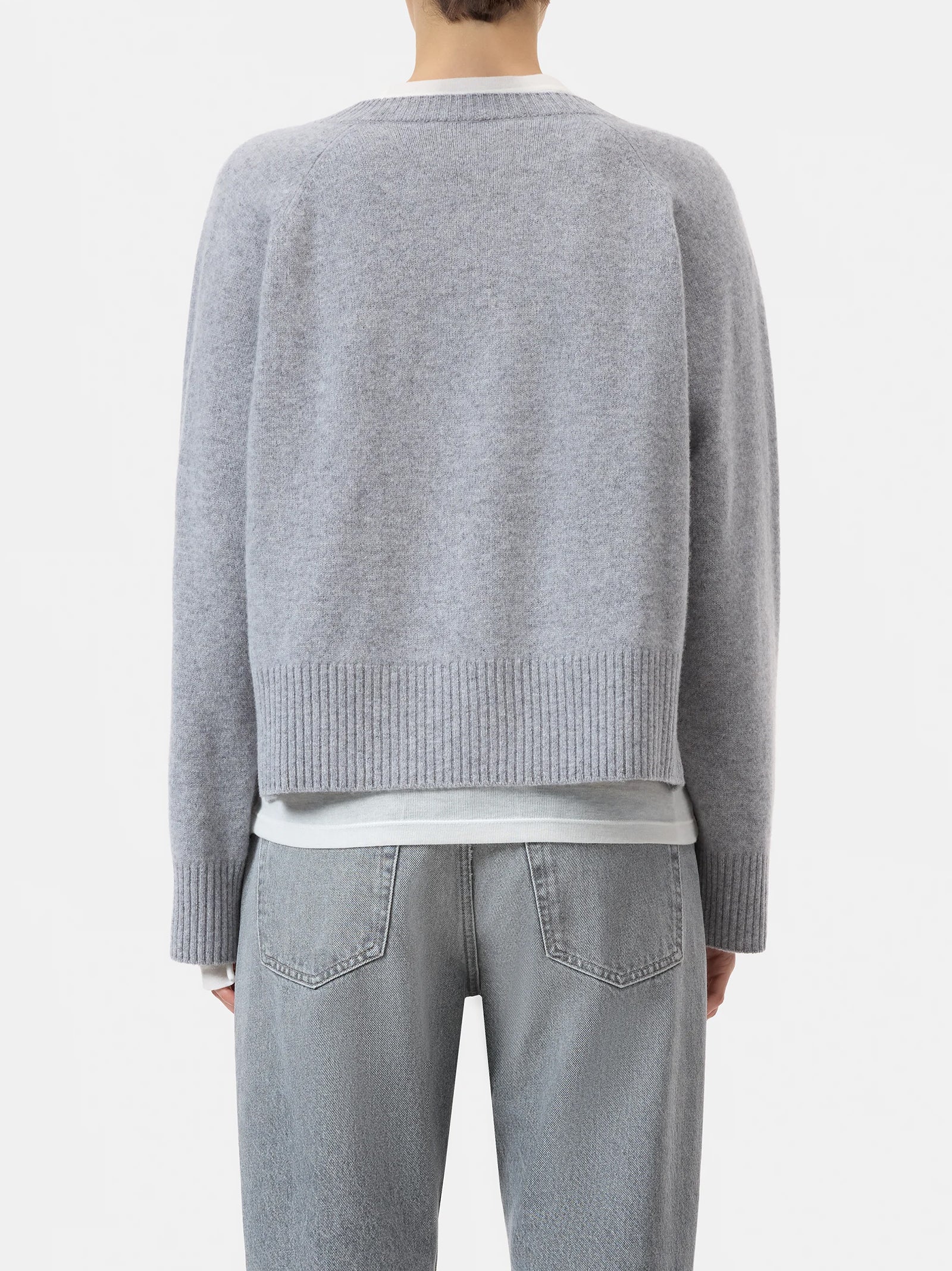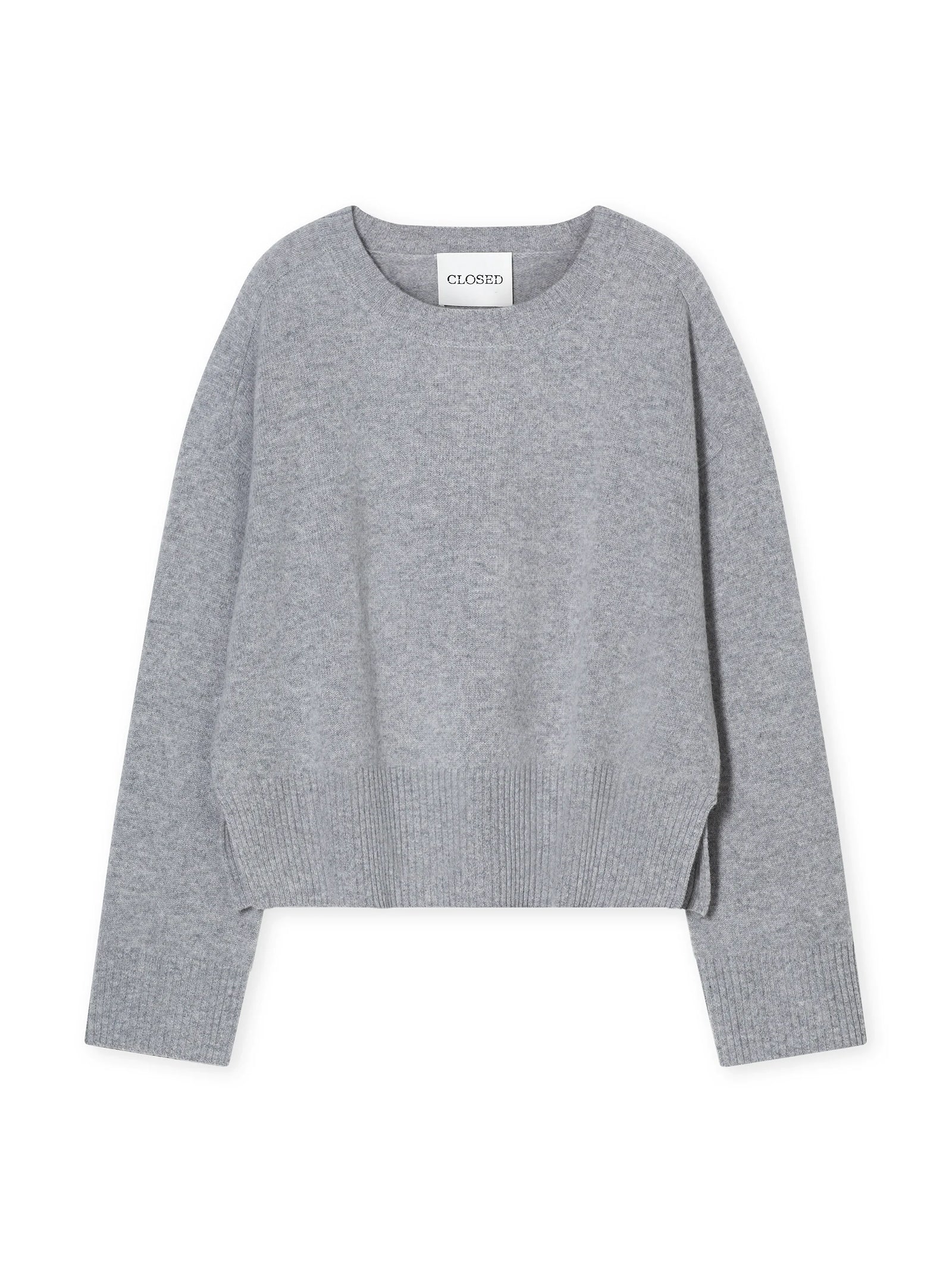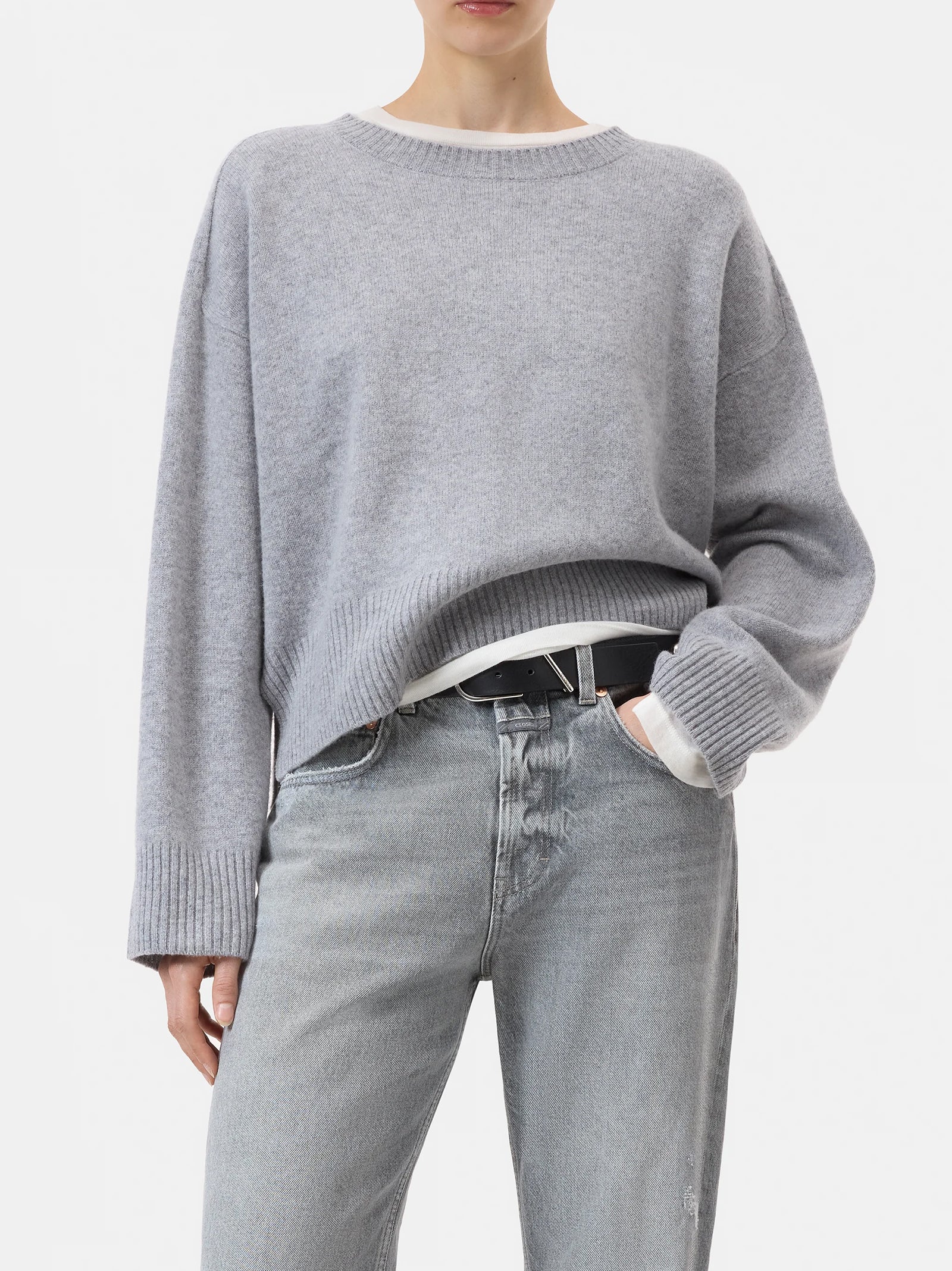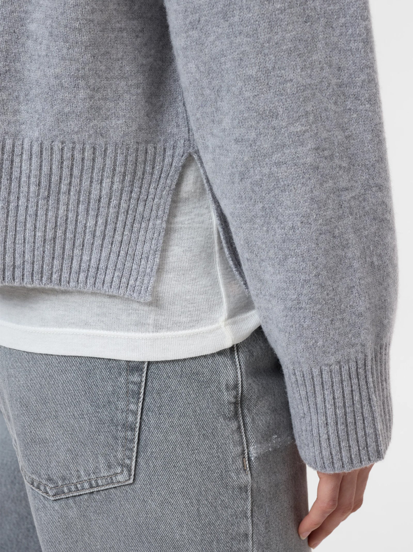 Maglione girocollo con maniche ampie in lana merino con un delicato effetto overwash. Vestibilità regolare con maniche a sella, spacchi laterali sul fondo e innovative cuciture a maglia.