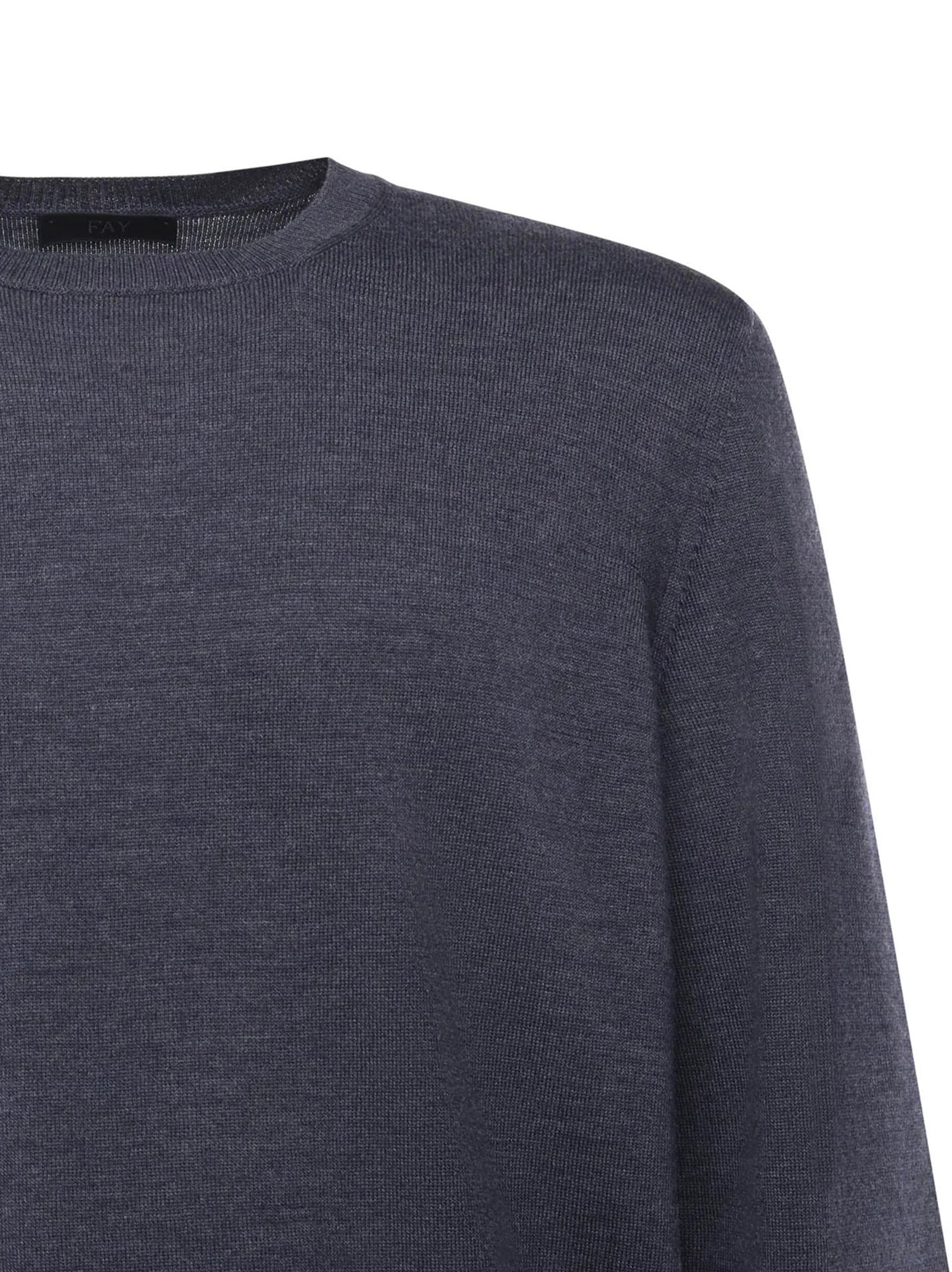 Maglione girocollo in lana a maglia rasata, dallo stile essenziale e raffinato. Presenta una vestibilità regolare ed è impreziosito da un'etichetta con logo Fay sul fondo. Made in Italy.