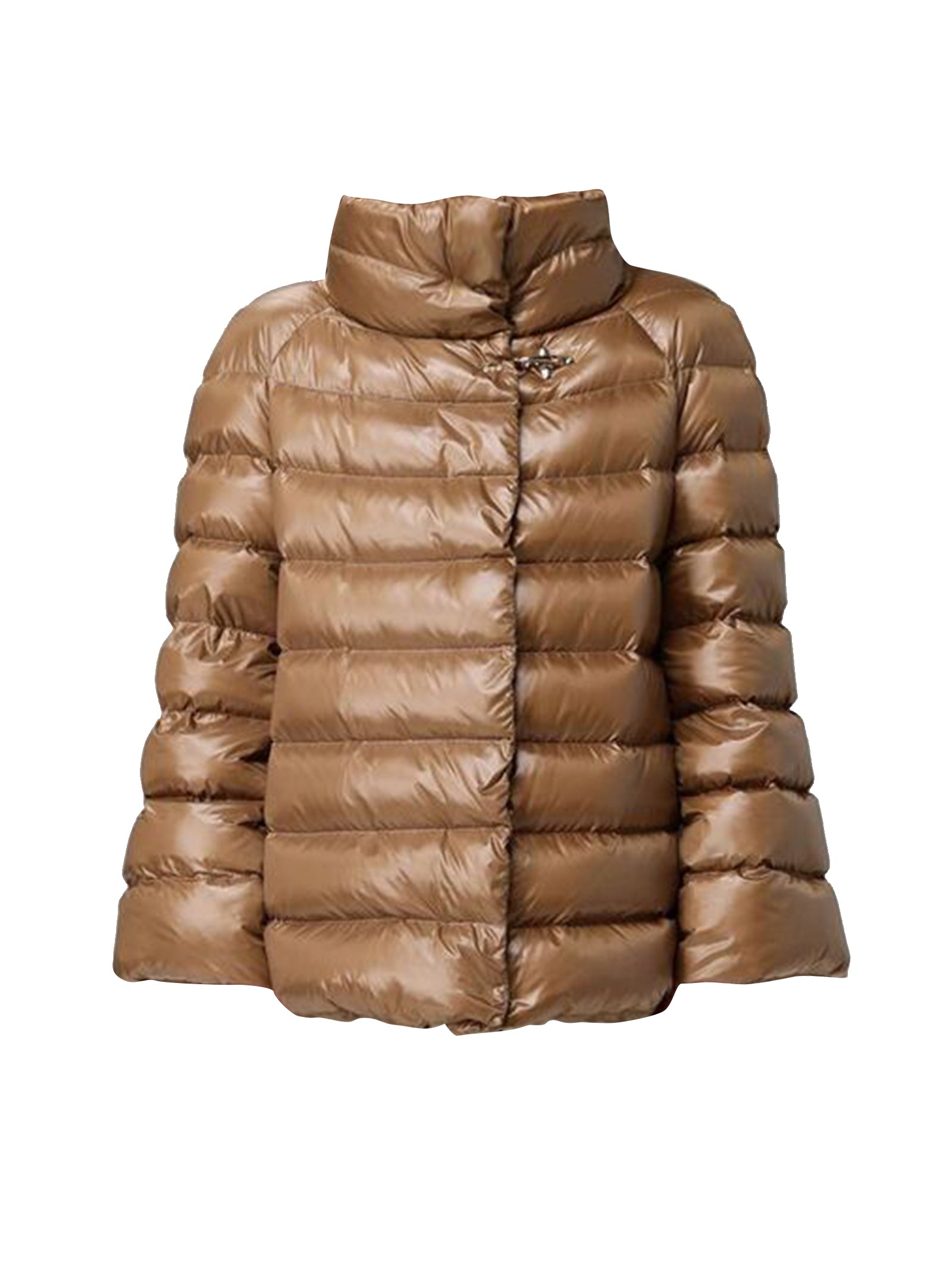 Questo piumino essenziale presenta linee geometriche, un ampio collo morbido e avvolgente. Realizzato in nylon leggero, downproof e idrorepellente, è imbottito in piuma con trapuntatura a righe. Ha maniche raglan, chiusura con zip, automatici invisibili, gancio Fay al collo e tasche laterali a filo con zip.