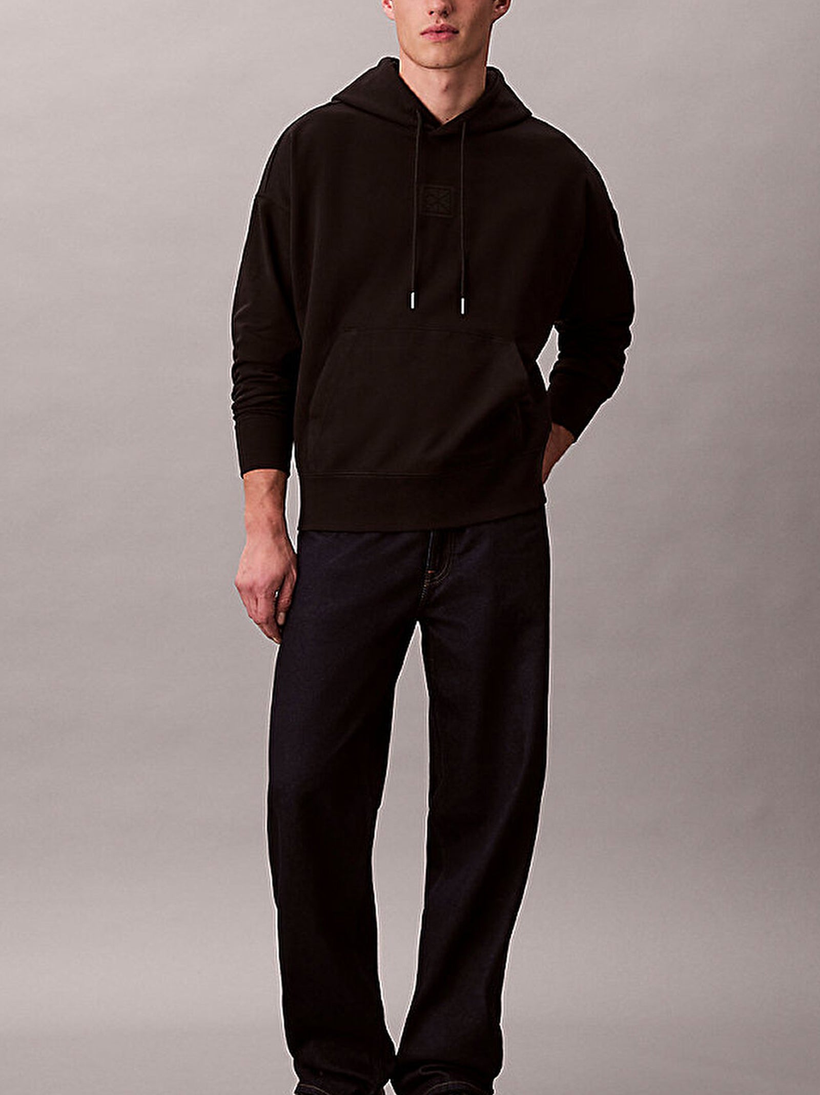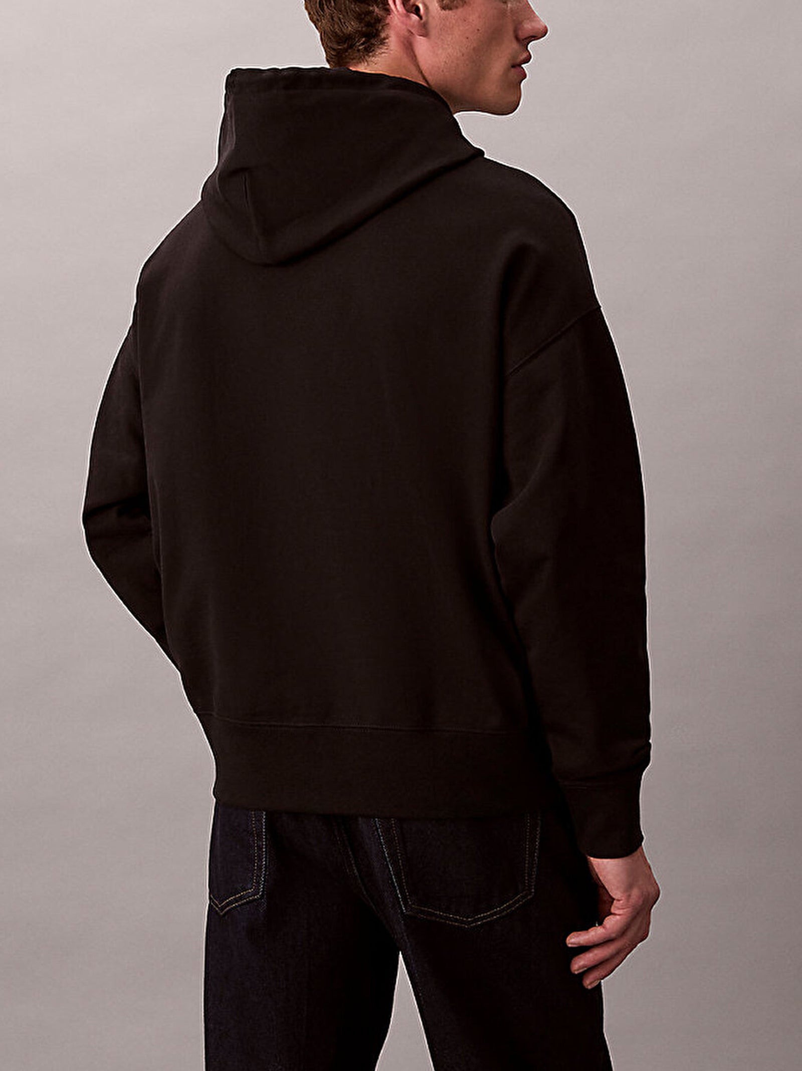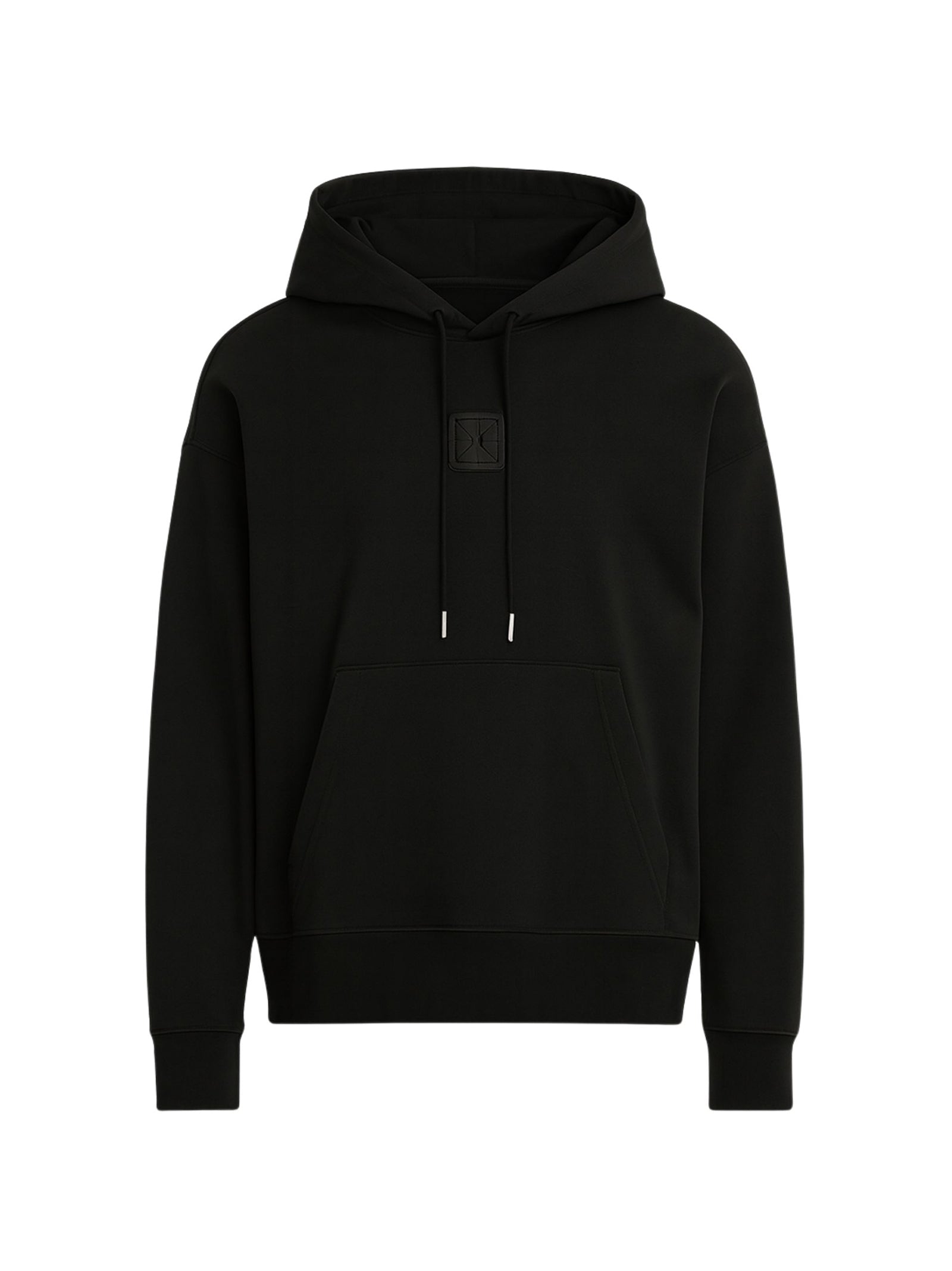 Felpa con cappuccio regolabile, logo ricamato, tasche laterali e finiture a costine su polsini e orlo.