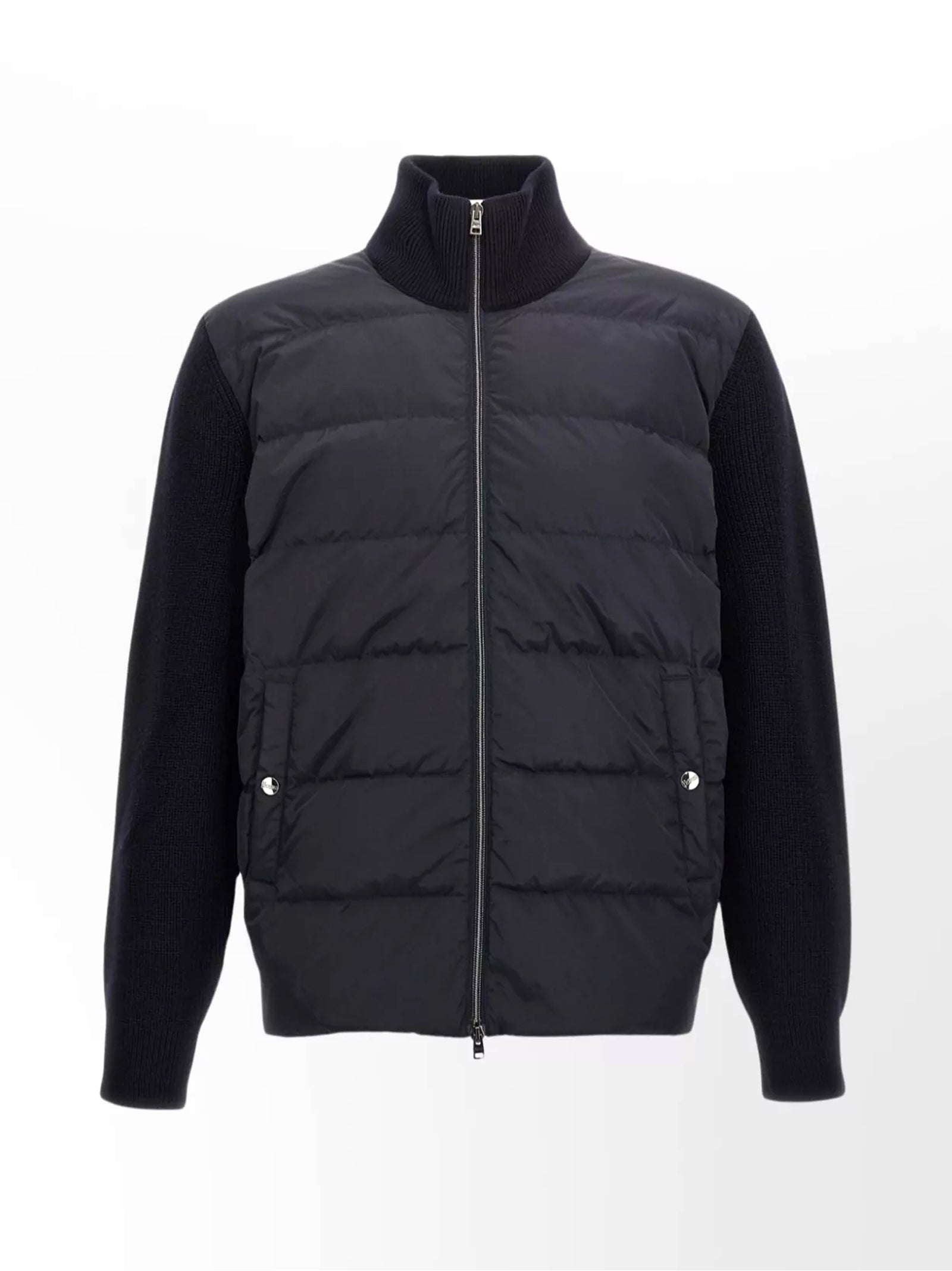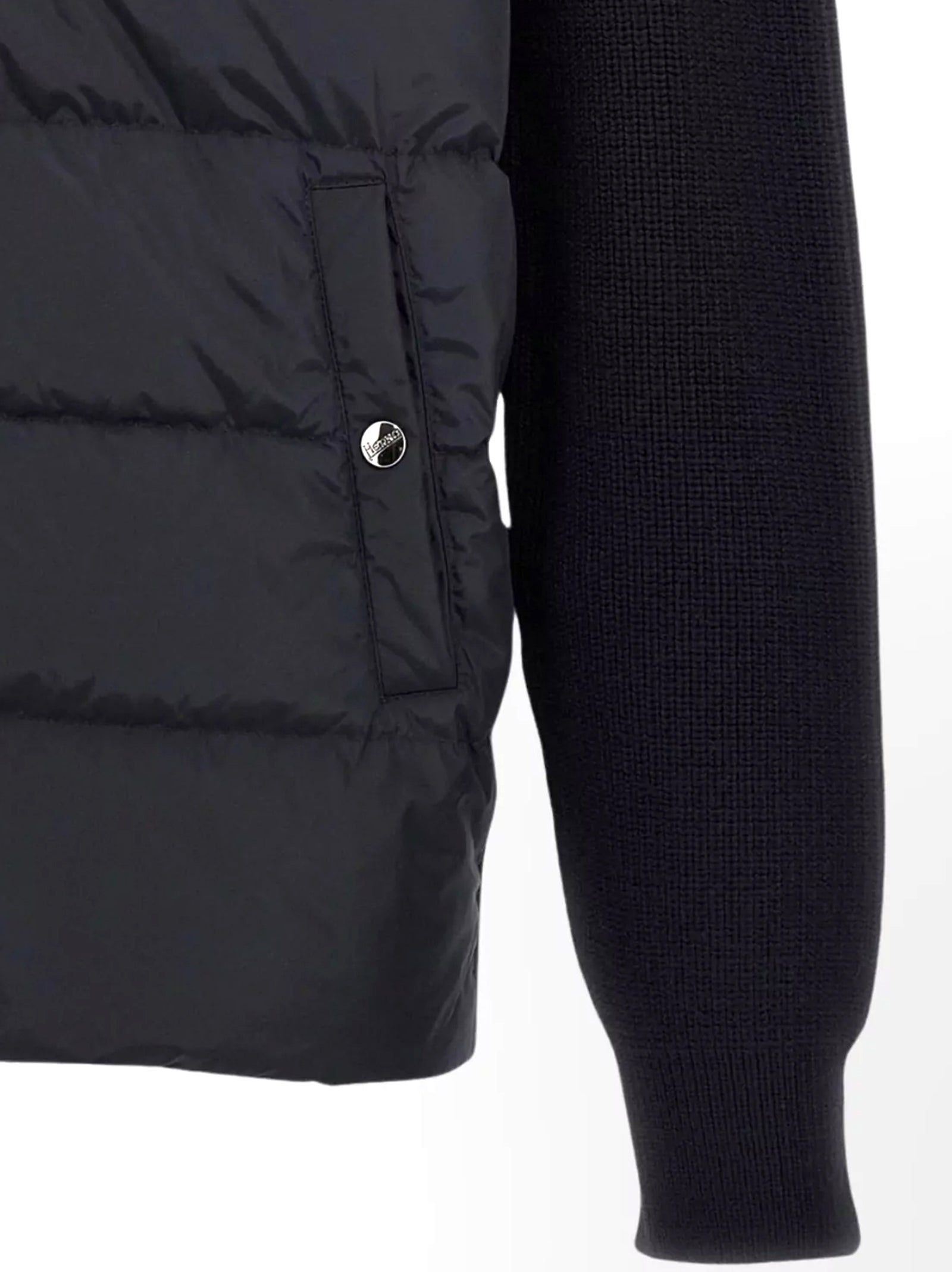 Cardigan imbottito Herno con chiusura a zip e collo alto. Realizzato in maglia di lana con pannelli imbottiti, presenta finiture a coste su polsini e colletto, due tasche laterali a filetto e una placca logo sul retro. Vestibilità regolare.