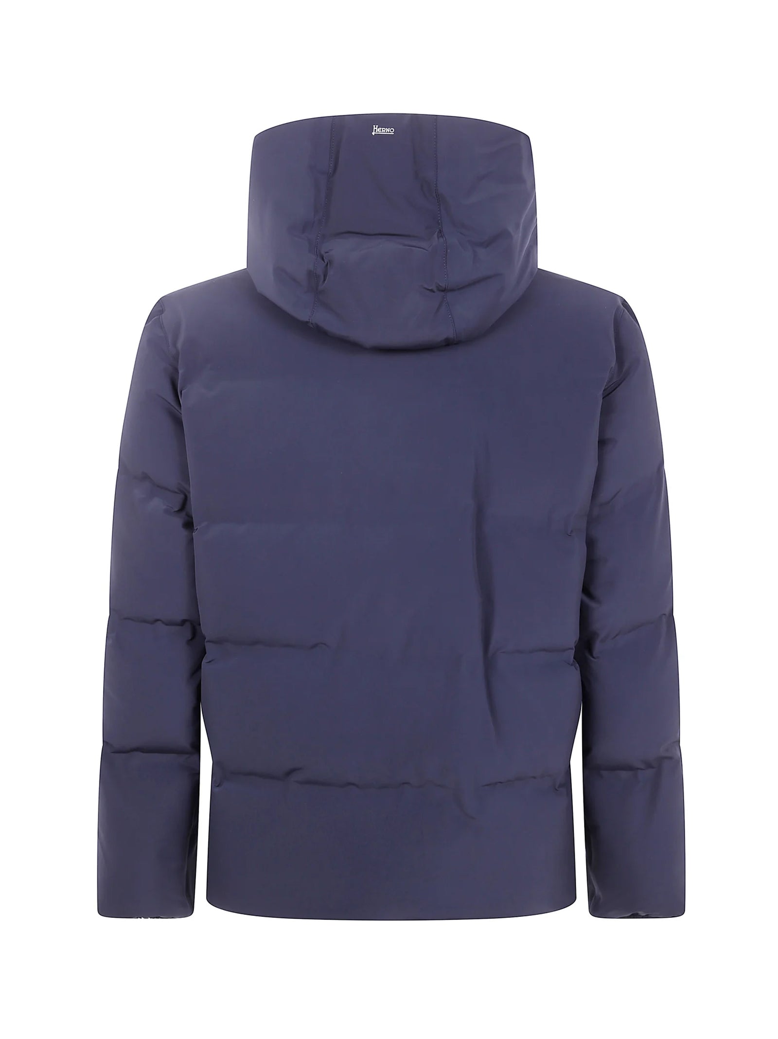 Piumino corto imbottito con cappuccio, chiusura con zip, maniche lunghe e tasche laterali.