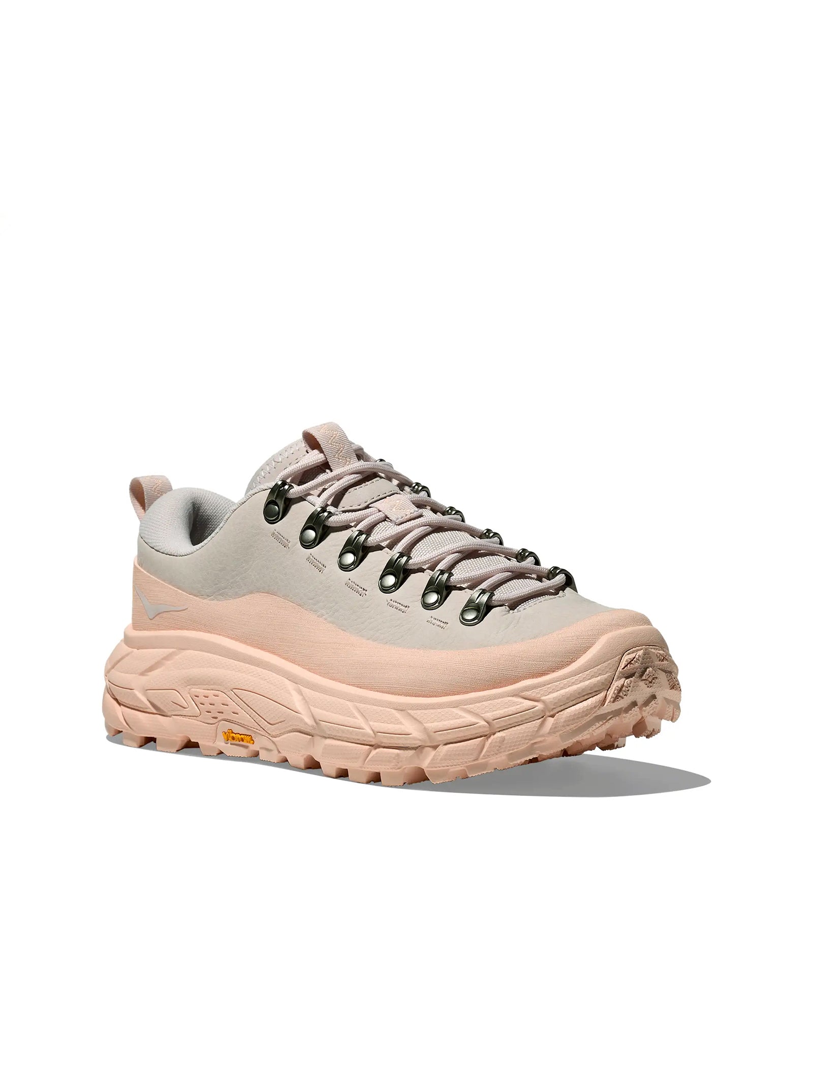 La Tor Summit reinterpreta la tradizione del trekking in chiave urbana, combinando lo spirito da trail con design contemporaneo. Realizzata in nabuk pregiato con occhielli metallici, cuciture a zig-zag e bordo antifango in gomma, offre ammortizzazione HOKA e suola Vibram® Megagrip per comfort, stabilità e trazione su ogni superficie.
