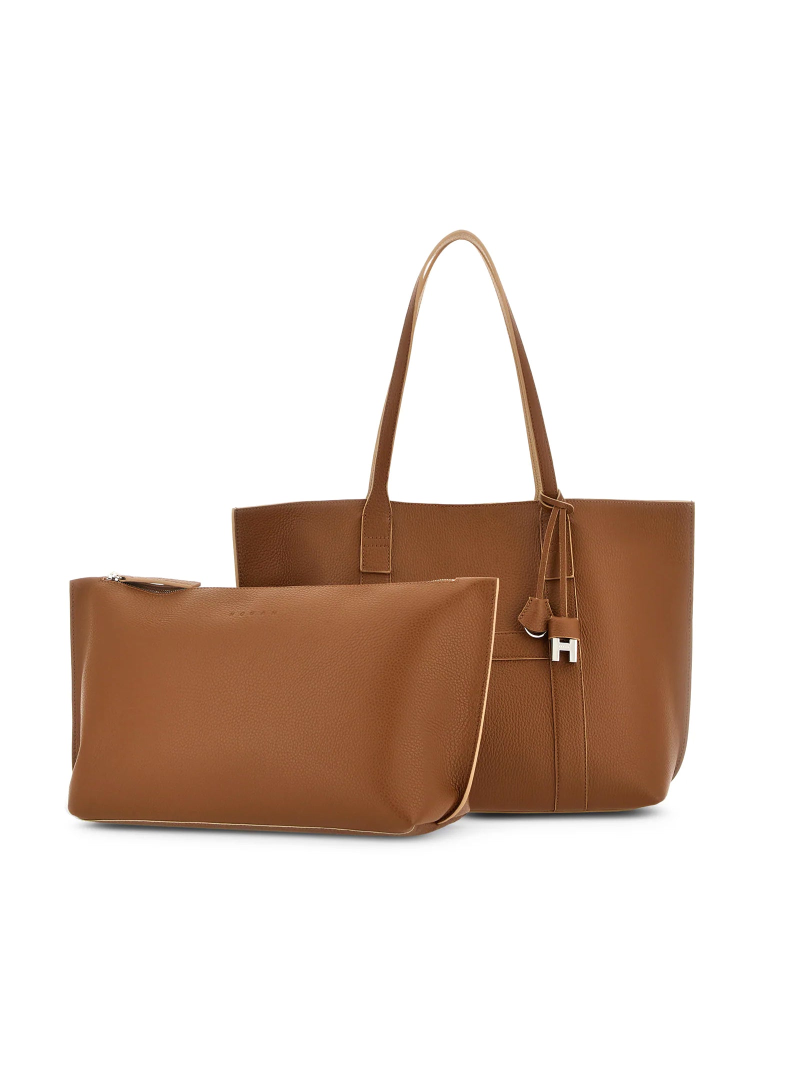 Shopping bag da donna realizzata in pelle, con logo Hogan impresso. Dotata di manici fissi, chiusura con bottone magnetico e busta interna removibile con zip.