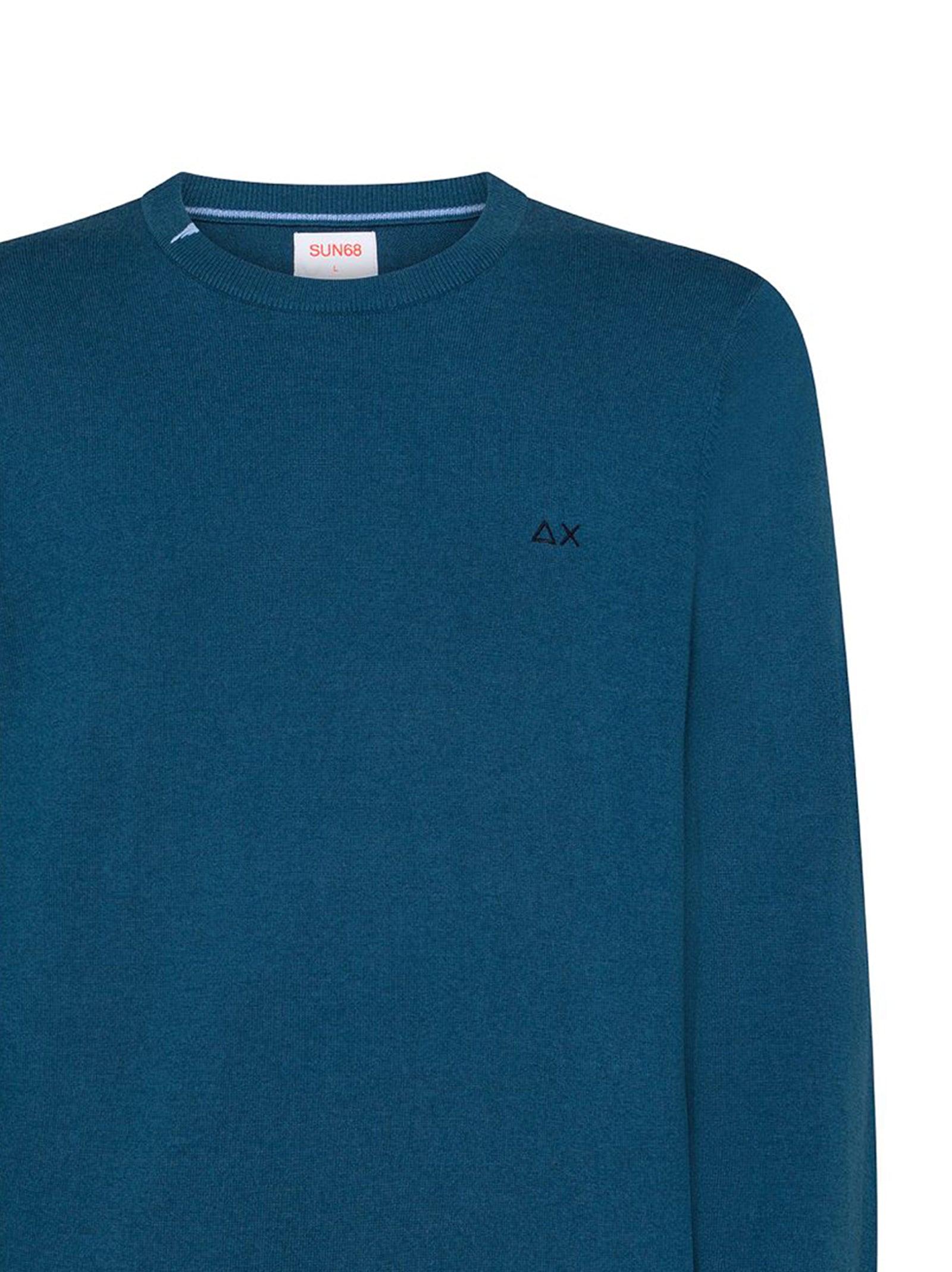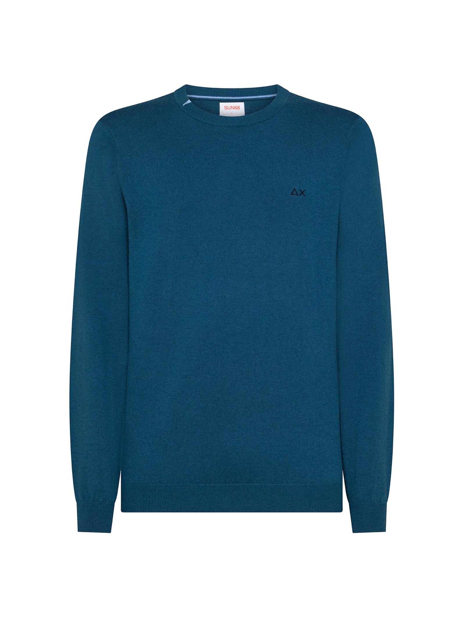 Maglia a girocollo in cotone e lana, maniche lunghe, bordi a costine e piccolo dettaglio a contrasto.