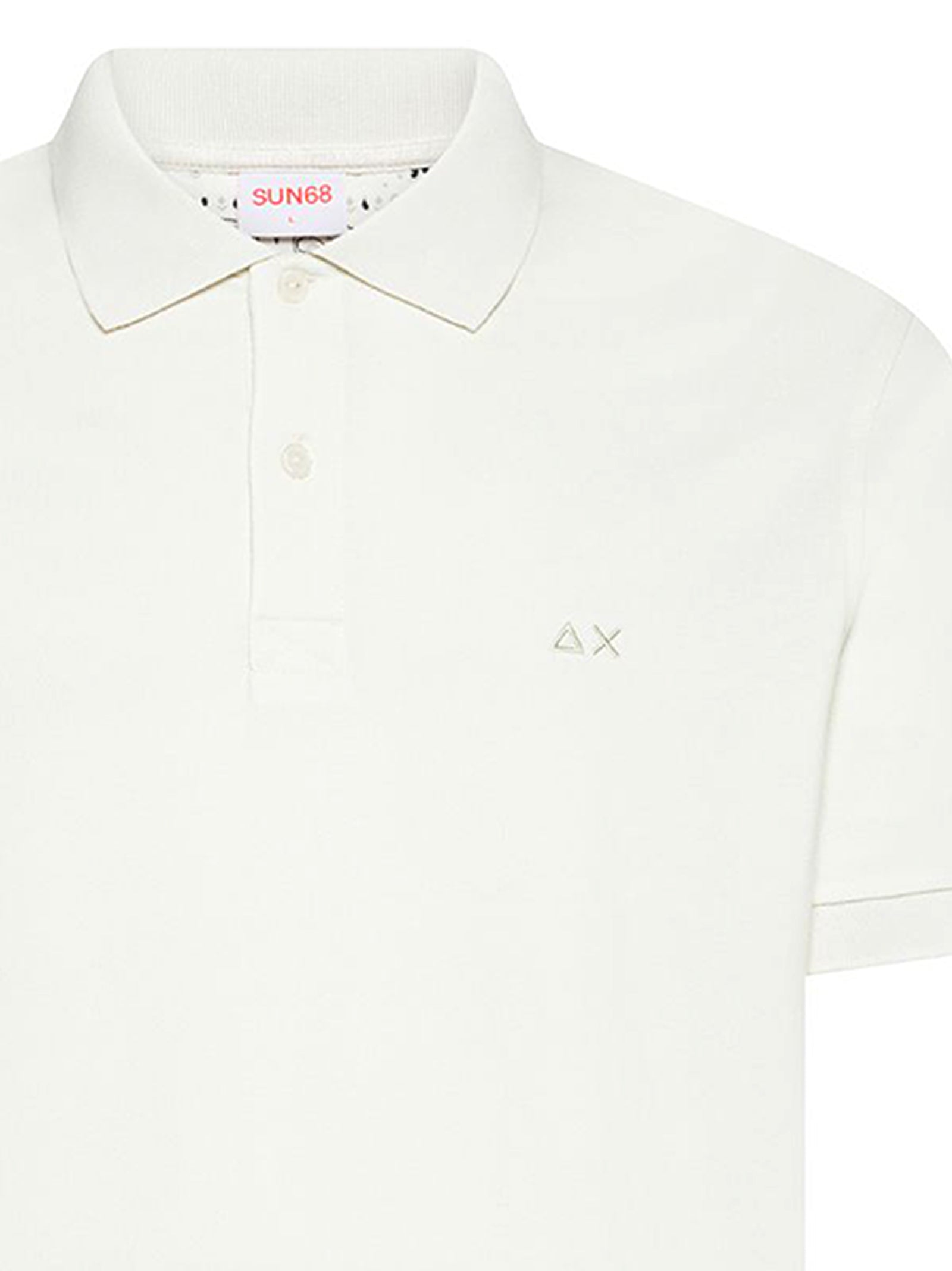 Polo in piquet di cotone con fodera interna a stampa floreale, maniche corte, chiusura con bottoni e logo SUN68 ricamato sul petto.