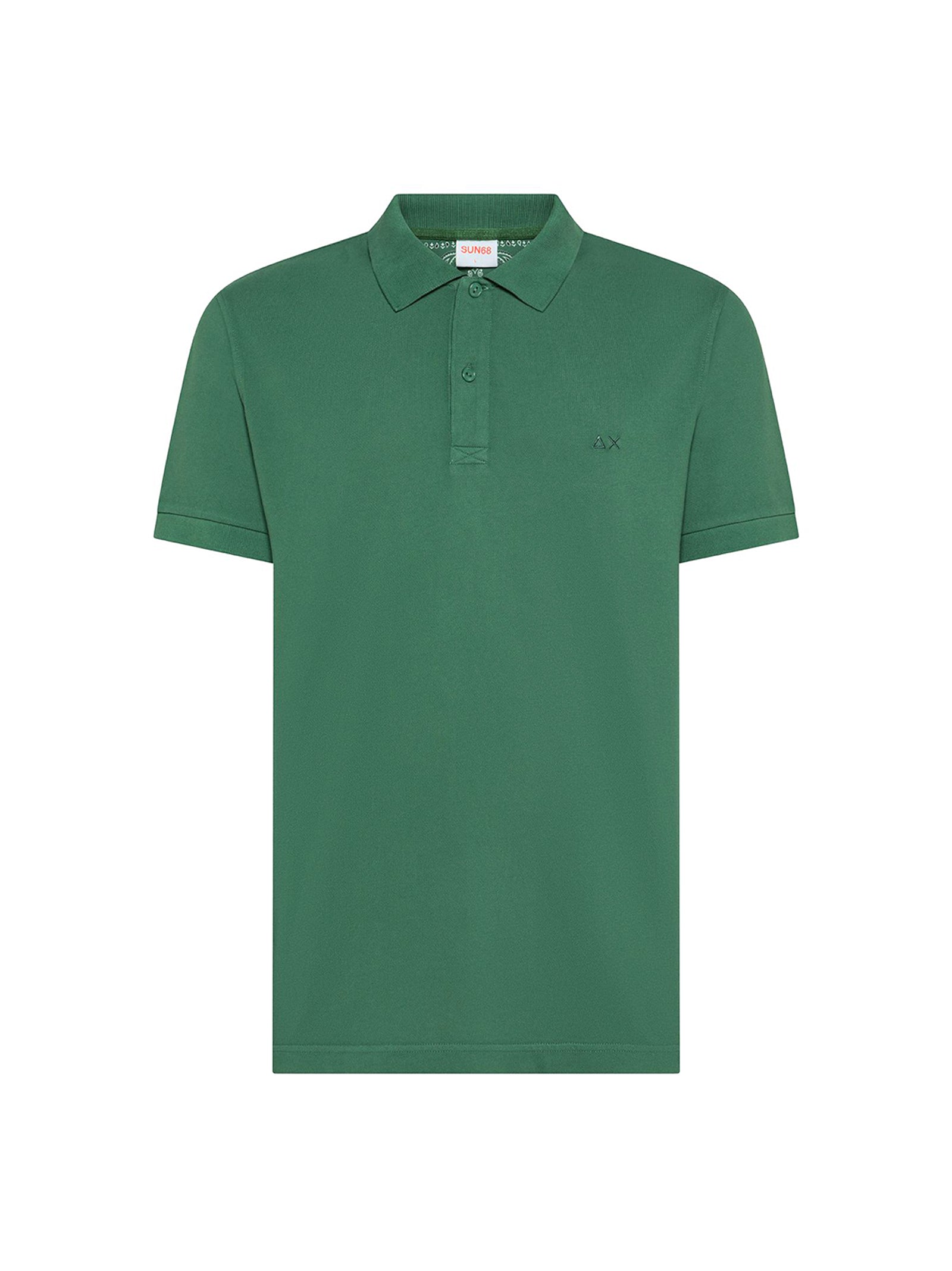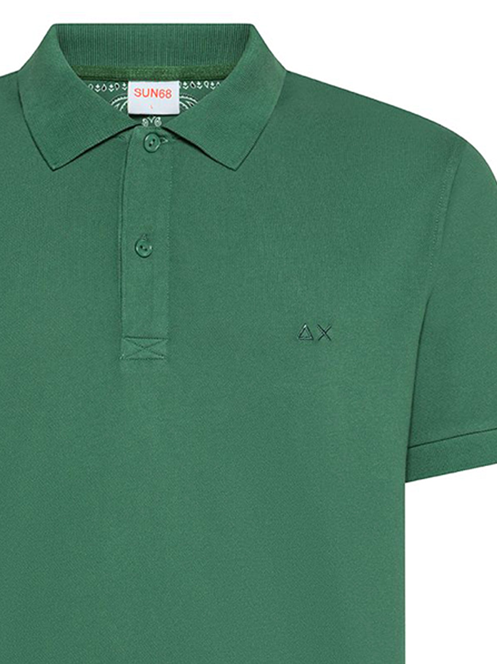 Polo in piquet di cotone con fodera interna a stampa floreale, maniche corte, chiusura con bottoni e logo SUN68 ricamato sul petto.